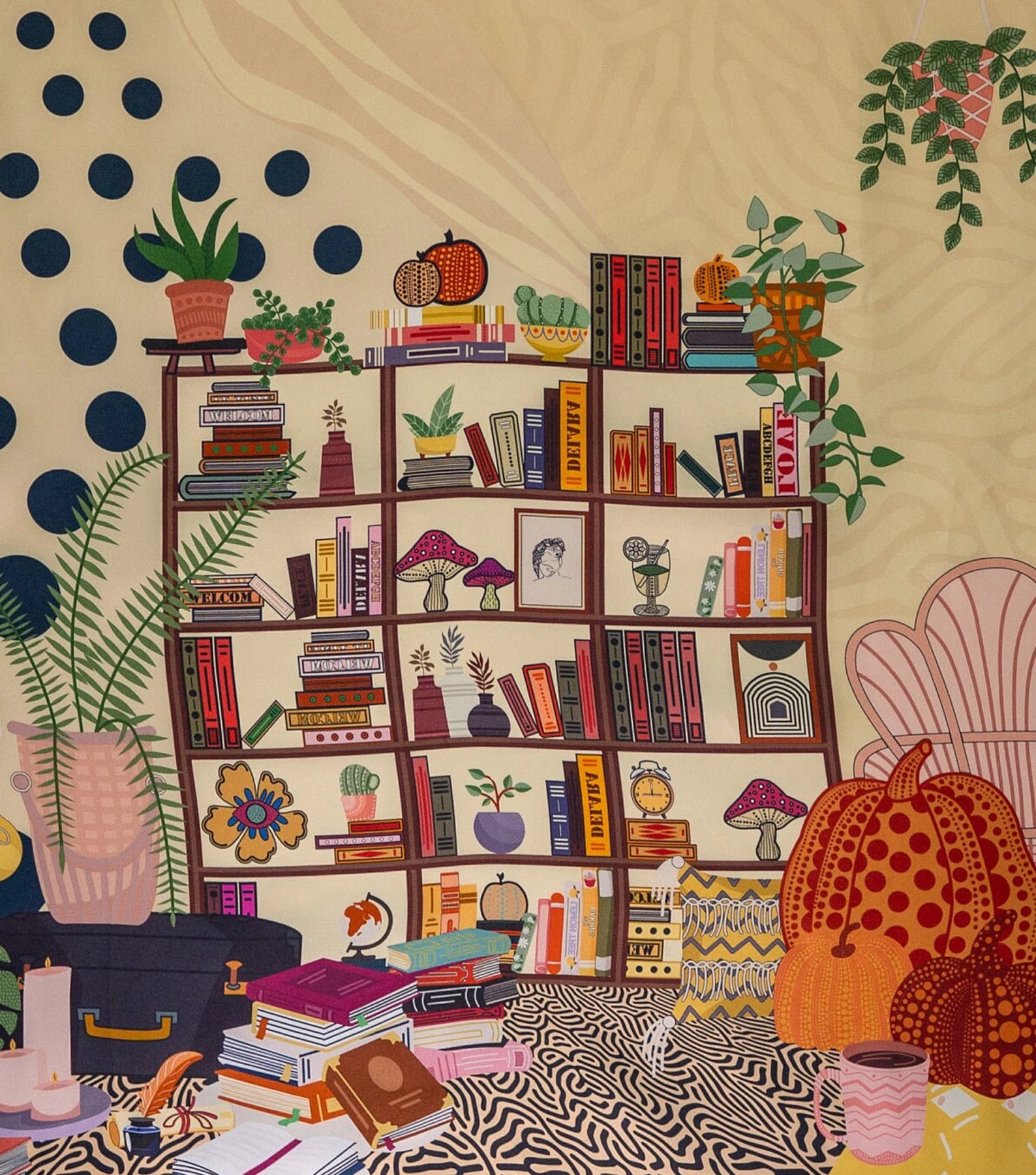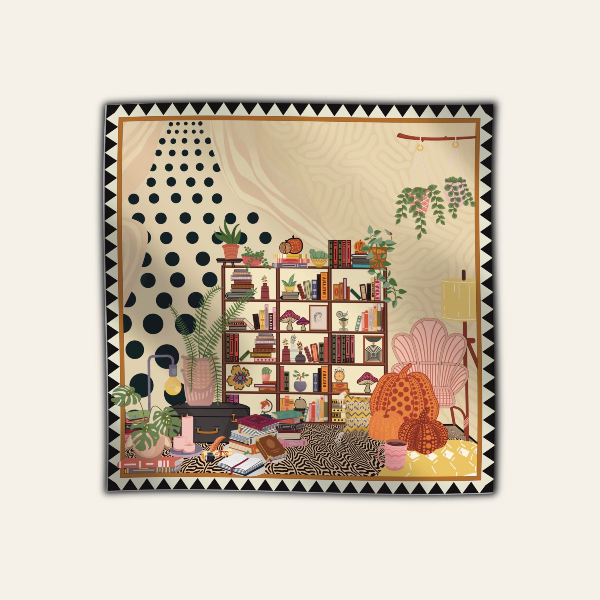 The 'L'élégance with Polka Dots' luxury silk scarf features a love for books and inspiration from Kusama's polka dots. Crafted in 100% silk twill with meticulously hand-hemmed edges, the square scarf offers high quality and elegant allure, as its smooth, lustrous texture effortlessly elevates your style. Beyond a mere accessory, this scarf is a timeless statement of luxurious sophistication, ideal for both gifting and personal indulgence.