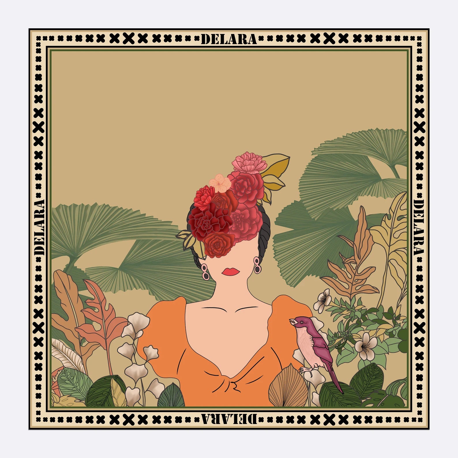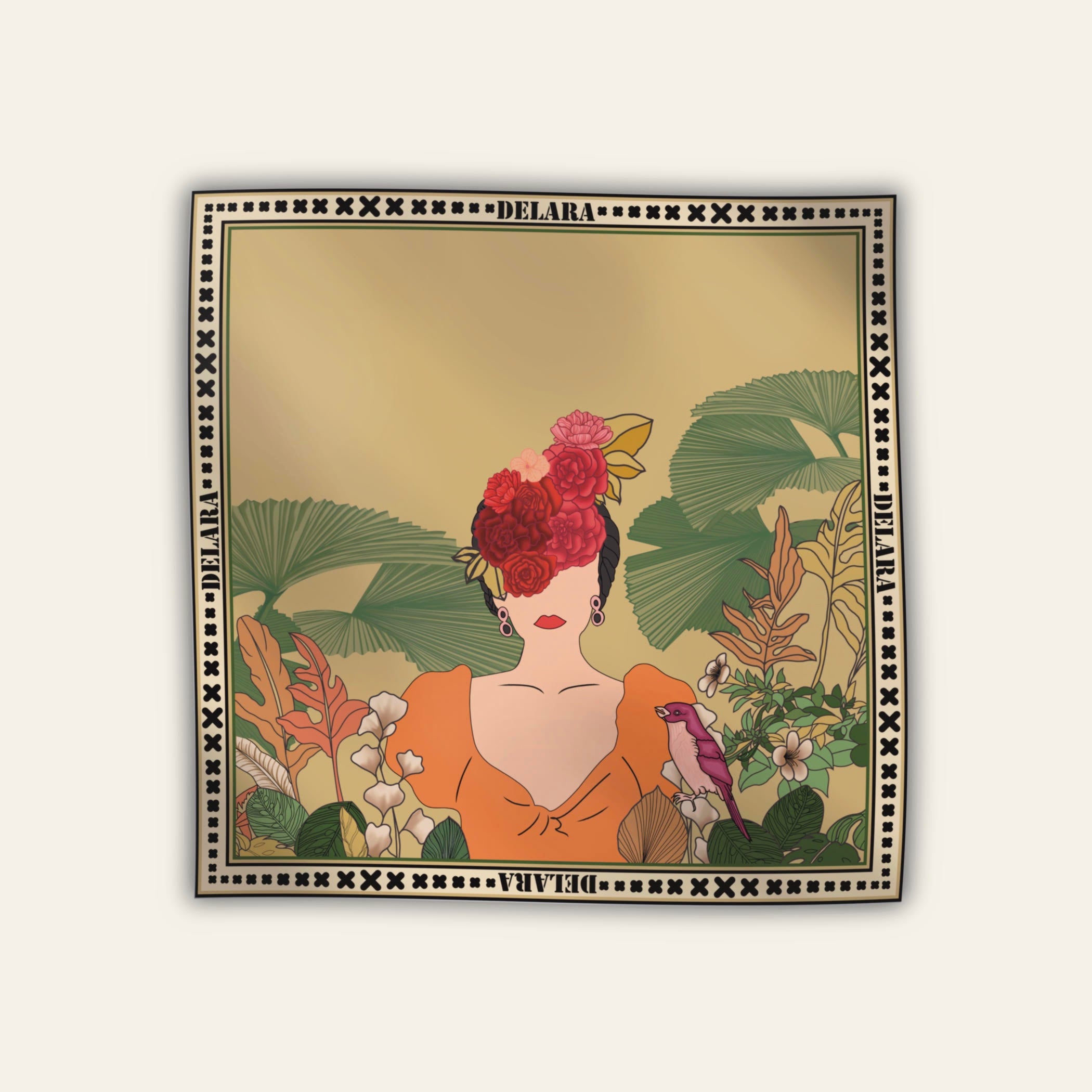 The 'Embrace - Florale de Frida' luxury silk scarf encapsulates the spirit of Frida in a botanical and floral representation. Crafted in 100% silk twill with meticulously hand-hemmed edges, the square scarf offers high quality and elegant allure, as its smooth, lustrous texture effortlessly elevates your style. Beyond a mere accessory, this scarf is a timeless statement of luxurious sophistication, ideal for both gifting and personal indulgence.